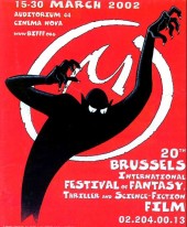 Commentaire : Affiche du Festival du Film Fantastique de Bruxelles - le Brussels International Fantastic Film Festival (BIFFF) - du 15 au 30 mars 2002 - illustrée par un dessin inédit de Edgar Pierre Jacobs.