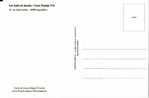 Commentaire : Carte se rattachant au numéro 6 de la revue des Amis de Jacobs.