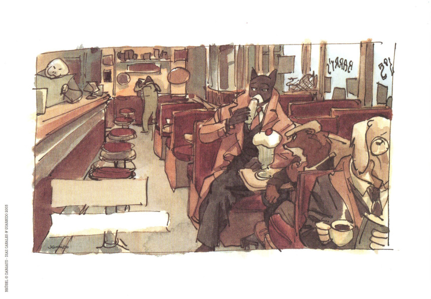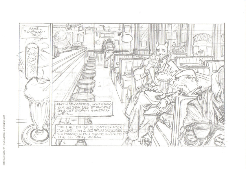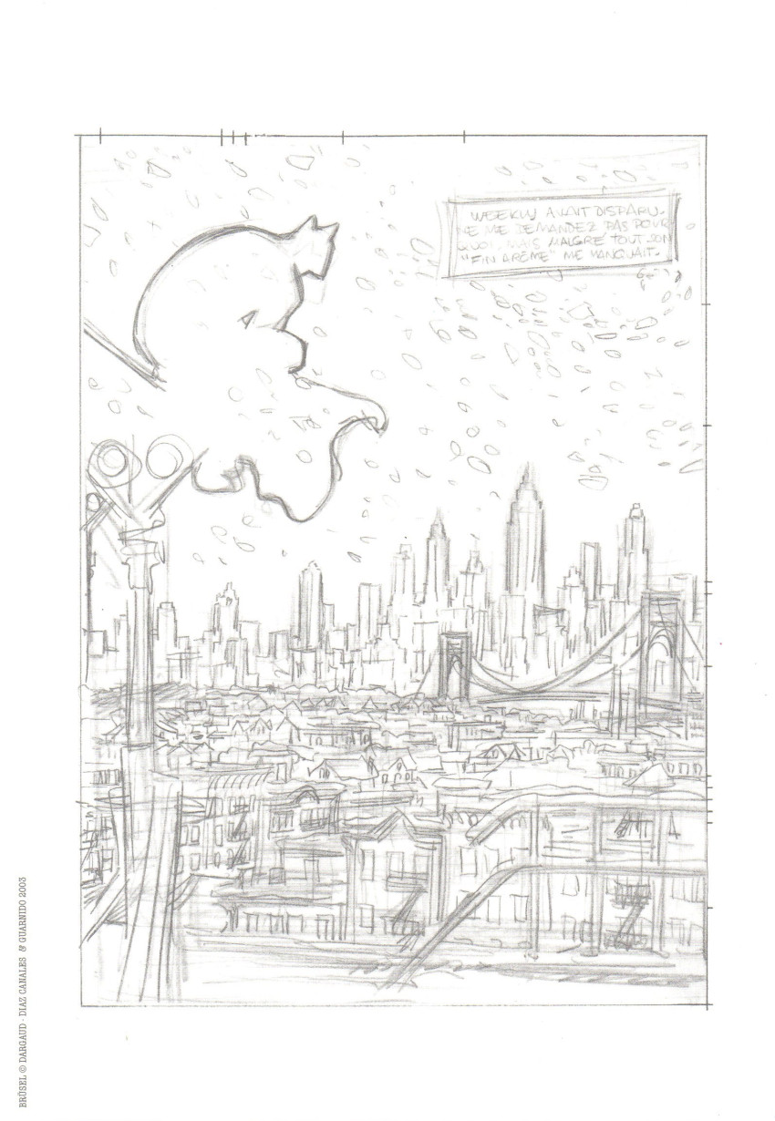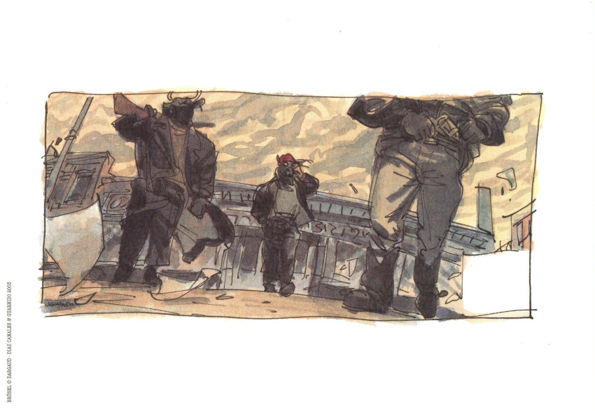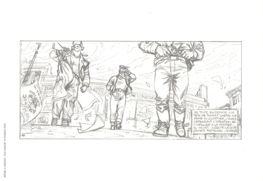 Commentaire : Fait partie des 9 crayonnés et 9 essais couleurs imprimés en quadrichromie contenus dans le portfolio.