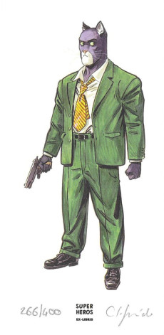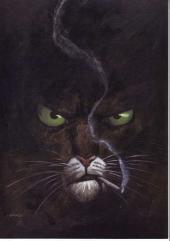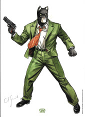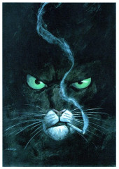 Commentaire : Titré "Blacksad". Fait partie des 18 cartes postales contenues dans le portfolio. Existe avec une variante au verso (flashcode à la place de la zone timbre : cette série de cartes est éditée à 2000 exemplaires en septembre 2010, contre 1000 pour la première édition du portfolio en janvier 2010), le contenu du portfolio reste identique.