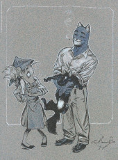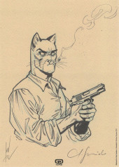 Commentaire : Dessin original réalisé par Juanjo Guarnido pour l'exposition consacrée à Blacksad lors des 16e Rendez-Vous de la Bande Dessinée d'Amiens. Numéroté et signé par Guarnido et Diaz Canales.