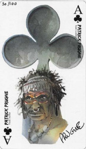 Commentaire : Carte à jouer numérotée et signée, faisant partie d'un ensemble de 78 cartes nommé "Carte Blanche - Deuxième donne". Ces cartes sont éditées à 100 exemplaires chacune, sont liées à un album précis et 1 carte supplémentaire est réservée aux abonnés à la collection. Ces cartes sont mises dans la catégorie Carte (et non Jeux) car reliées spécifiquement à un album dans lequel est inséré un certificat correspondant à la carte portant le même numéro.