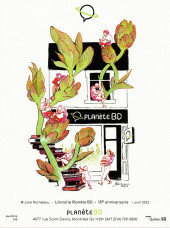 Commentaire : Ex-libris édité pour fêter le 15ème anniversaire de la librairie Planète BD (Montréal, Québec).