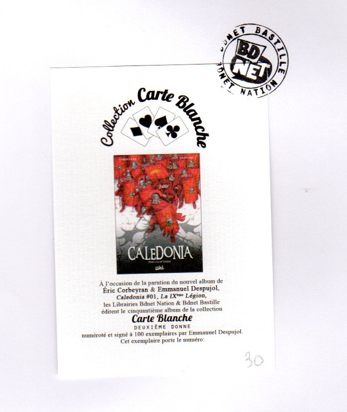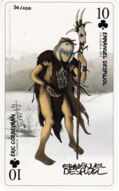 Commentaire : Carte à jouer numérotée et signée, faisant partie d'un ensemble de 78 cartes nommé "Carte Blanche - Deuxième donne". Ces cartes sont éditées à 100 exemplaires chacune, sont liées à un album précis et 1 carte supplémentaire est réservée aux abonnés à la collection. Ces cartes sont mises dans la catégorie Carte (et non Jeux) car reliées spécifiquement à un album dans lequel est inséré un certificat correspondant à la carte portant le même numéro.