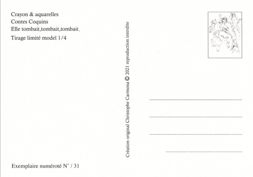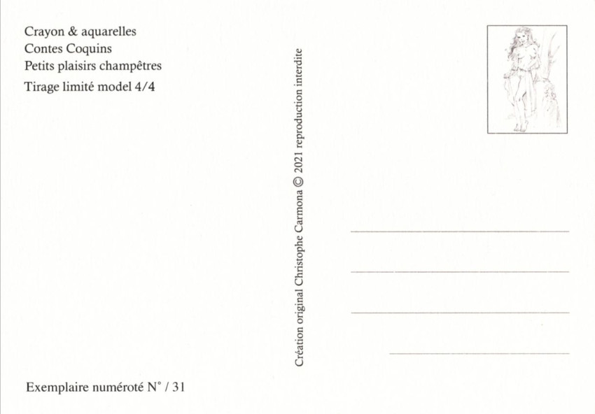 Commentaire : Fait partie d'une série de 4 cartes postales au tirage limité à 31 exemplaires.