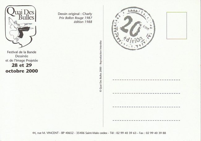 Commentaire : Carte rééditée pour la 20e édition du Festival Quai des Bulles de Saint-Malo.