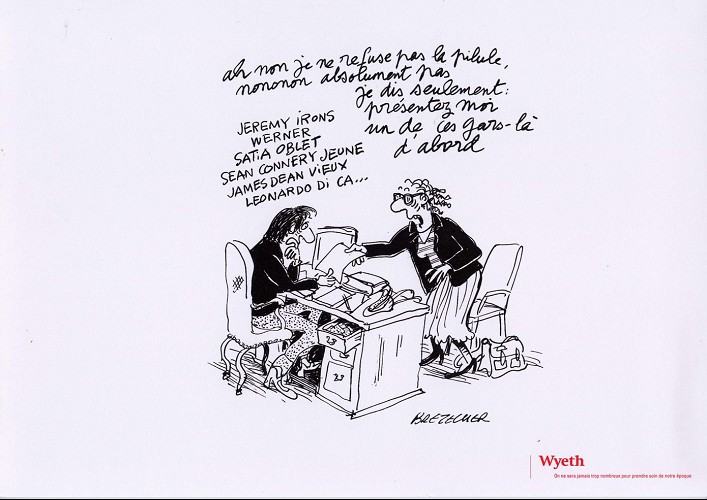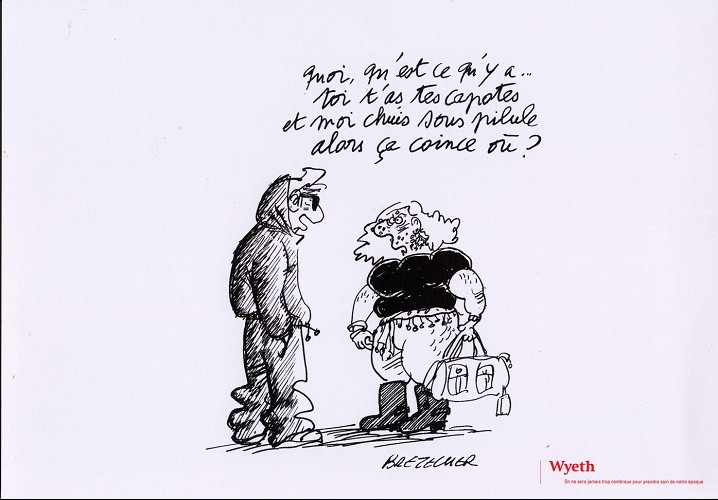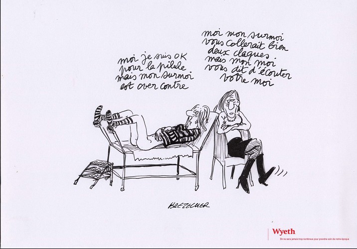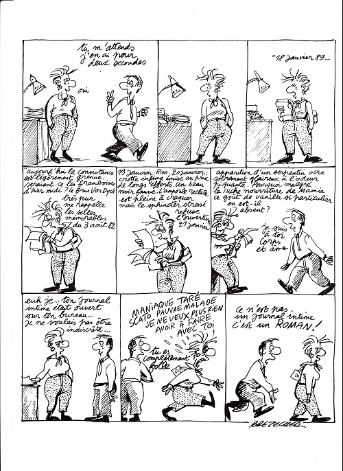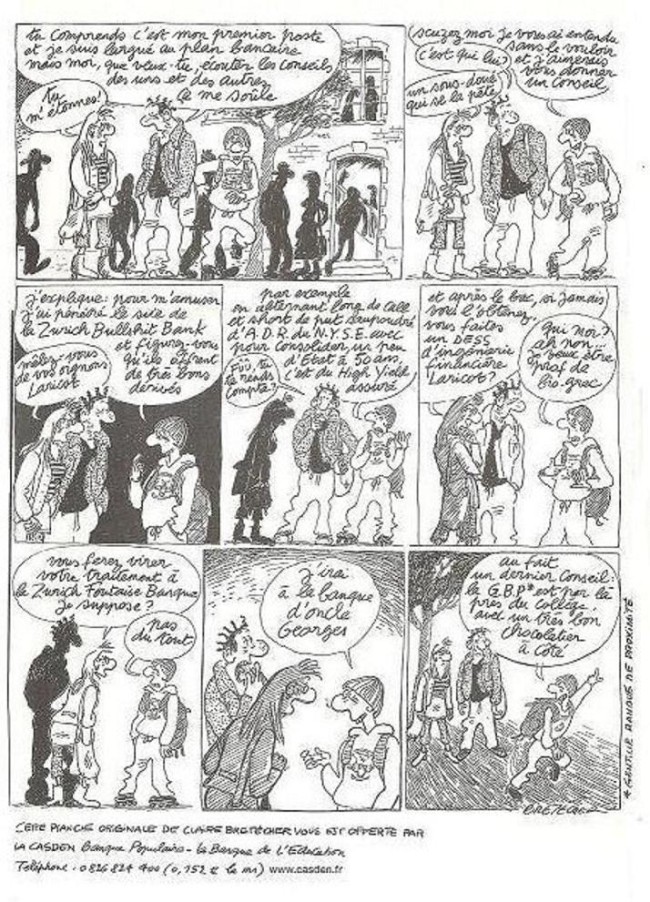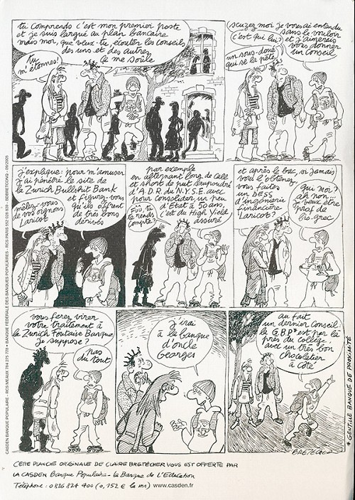 Commentaire : Planche originale de Claire Brétécher, réalisée pour CASDEN La Banque Populaire.