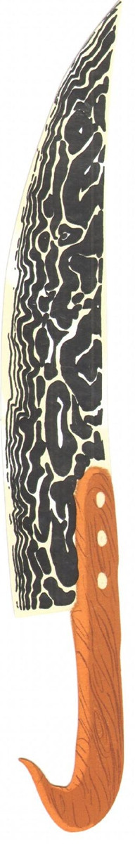 Commentaire : Découpé en forme de couteau. Couverture de couleur argenté.