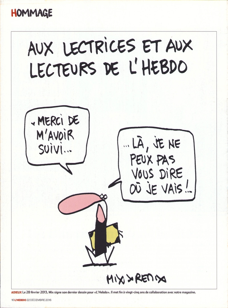 Sommaire : Supplément spécial du magazine L'Hebdo en hommage au dessinateur Mix & Remix (Philippe Becquelin) décédé le 19.12.2016.
