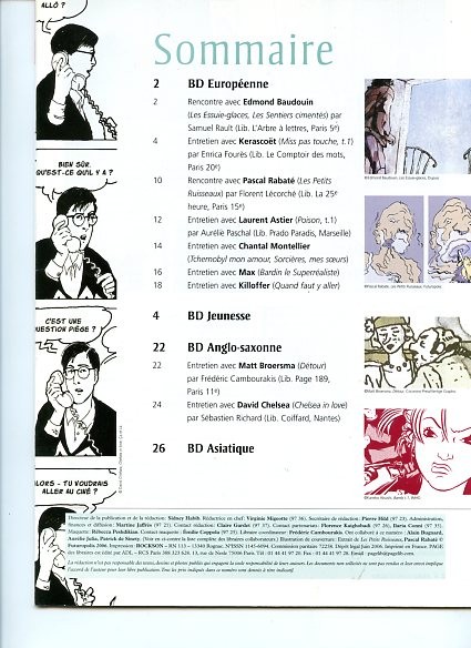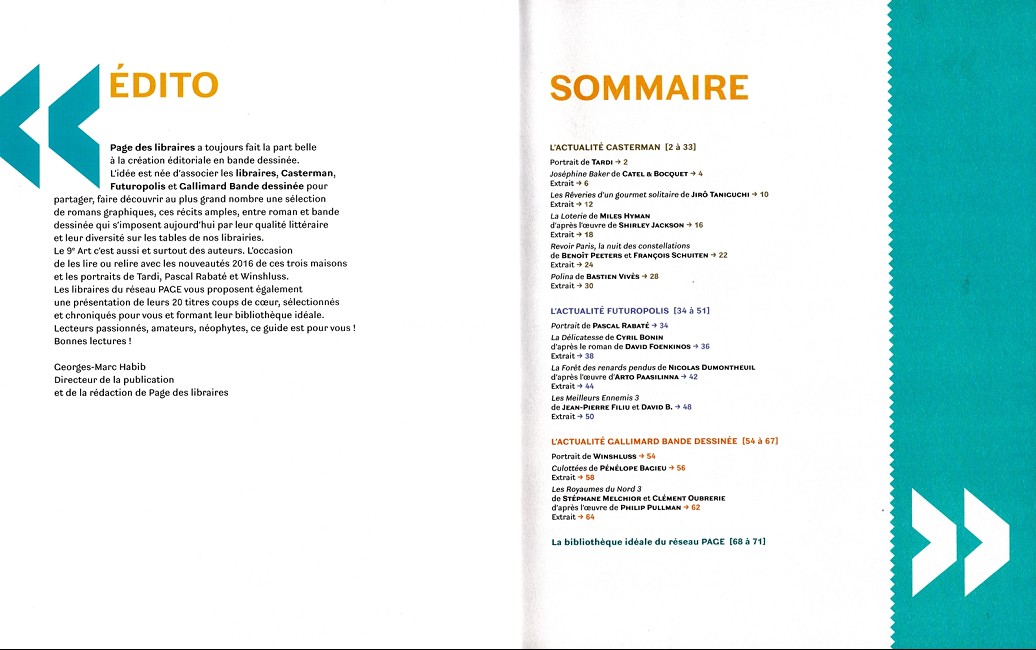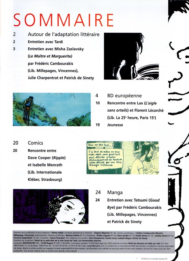 Sommaire : Créé à la fin des années 1980 pour faire face à l’avènement des grandes surfaces culturelles, PAGE des libraires rassemble une communauté de 1400 libraires indépendants soucieux de partager ses lectures. 1400 libraires du réseau PAGE lisent sur épreuves (c'est-à-dire avant parution), donnent leurs avis, écrivent des chroniques et recommandent les titres à paraître. Ce sont eux également qui interviewent les auteurs et montent les dossiers thématiques. Différents HS sont édités, dont les HS bande dessinée