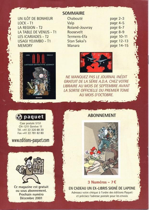Sommaire : © Éditions Paquet et les auteurs Narcisse - Tome 2 - Terra Nullus : 8 planches de la page 07 à la page 14 Angels Wings - Tome 2 - Black Widow : 8 planches de la page 03 à la page 11 2 planches crayonnées pages 08 et 09