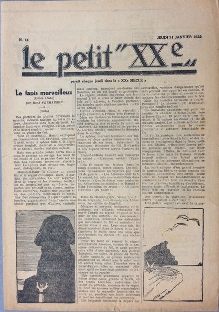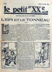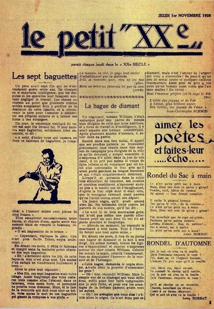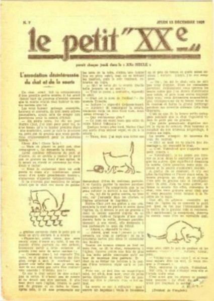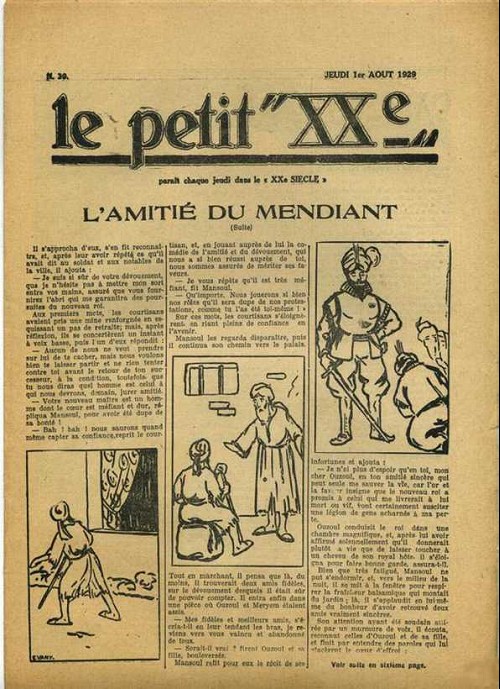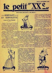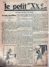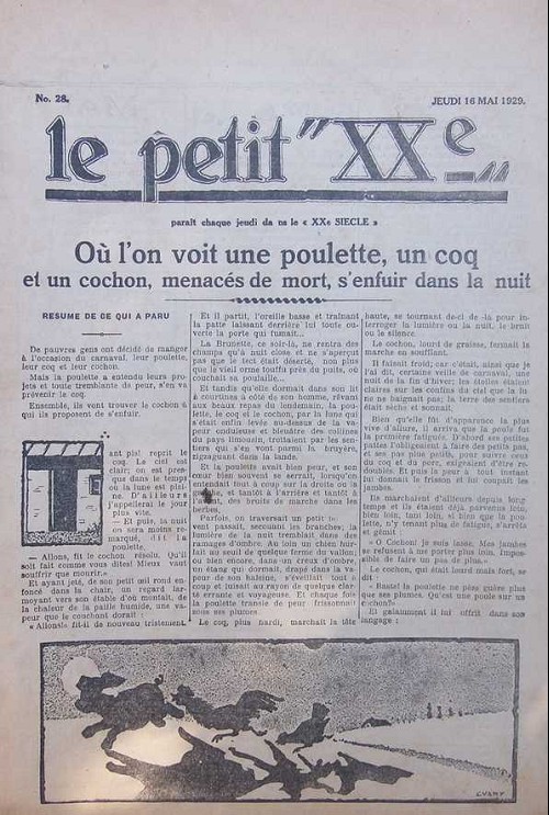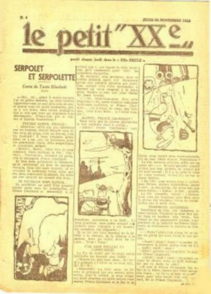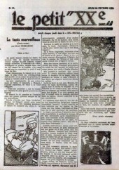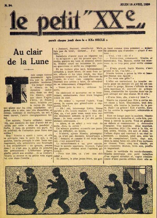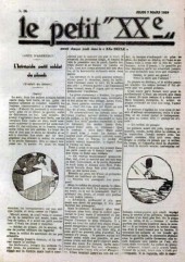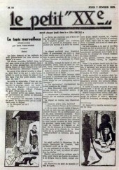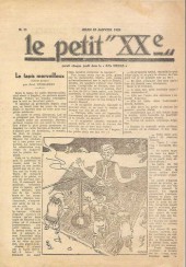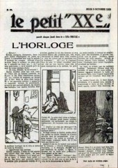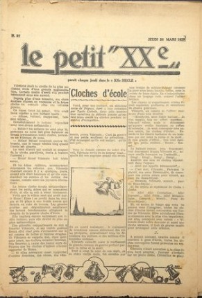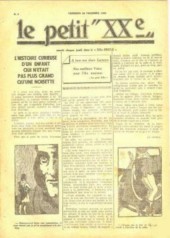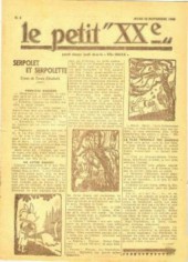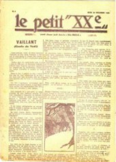 Sommaire : Le Petit Vingtième était un supplément hebdomadaire au journal belge Le Vingtième Siècle destiné à la jeunesse. 599 numéros sont parus chaque jeudi entre le 1er novembre 1928 et le 9 mai 1940, date à laquelle la Belgique est envahie par l'Allemagne. Le rédacteur en chef du Petit Vingtième était Georges Remi, plus connu sous le pseudonyme Hergé. Il a créé la plupart de ses héros pour alimenter ce supplément. Le plus célèbre, Tintin, est un reporter fictif du Petit Vingtième. Il continuera à vivre bien longtemps après la disparition du journal, dans Le Soir-Jeunesse puis le Journal de Tintin. @Wikipédia