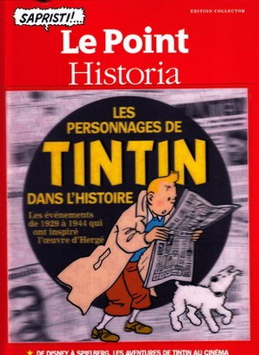 Sommaire : ÉDITION COLLECTOR ISSN 0242-6005 Édition limitée numérotée tirée à 4999 exemplaires N° 002776 © Hergé/Moulinsart 2011 Dépôt légal : 07/2011 D/2011/1740/01 ''Les Personnages de Tintin dans l’Histoire'' est une publication proposée par Sophia Publications (Historia) avec Le Point pour la France, Le Soir pour la Belgique, Le Temps pour la Suisse, Les Éditions La Presse pour le Canada. Édition reliée. Pas d'ISBN (Magazine). De "Tintin au pays des Soviets" à "le trésor de Rackham le rouge", les personnages des albums de Tintin replacés dans leur contexte historique. En fin d'album, un dossier sur les adaptations au cinéma incluant deux pages consacrées au premier film de Spielberg.