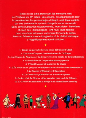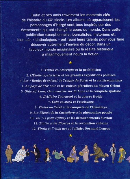 Sommaire : ÉDITION COLLECTOR ISSN 0018-2281 Édition limitée numérotée tirée à 4999 exemplaires N° 1997 ©coll. Studios Hergé DR. © Hergé/Moulinsart 2012 Achevé d'imprimer en juillet 2012. Dépôt légal : juillet 2012 ISBN 978-2-89705-104-4 ''Les Personnages de Tintin dans l’Histoire'' est une publication proposée par Sophia Publications (Historia) avec Le Point pour la France, La Libre Belgique pour la Belgique, Le Temps pour la Suisse, Les Éditions La Presse pour le Canada. Édition imprimée et reliée en P.R.C. De "Tintin au pays des Soviets" à "le trésor de Rackham le rouge", les personnages des albums de Tintin replacés dans leur contexte historique.