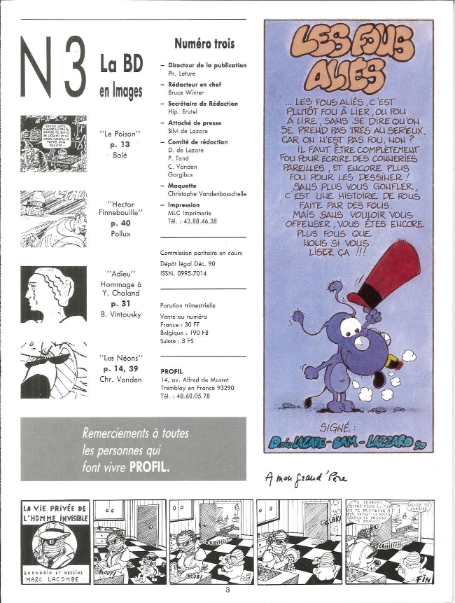 Sommaire : Revue notée trimestrielle mais qui n'est sortie qu'une fois par an