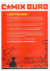 Sommaire : LECTEURS ! Vous avez été nombreux à accompagner le COMIX BURO pour le lancement de son nouveau mandat, et nous vous en remercions. Mais le combat n'est pas fini... Découvrez la suite de notre programme où, cette fois-ci, le mystère s'invite ! ...