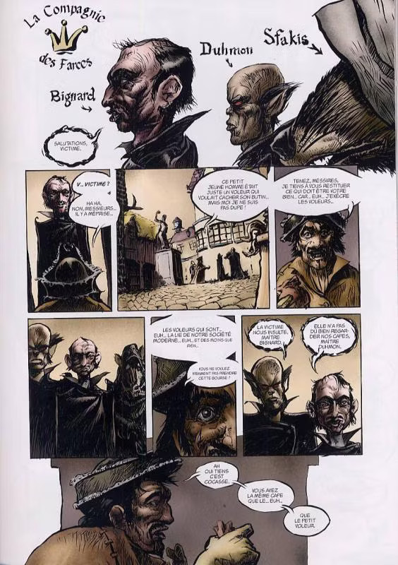 Dans cette mer de boue infâme apparaît comme par miracle Ruppert, un enfant blond, doux comme un ange, éclatant comme un ciel sans nuage et bon, dans un monde où rien ne l'est. Et, à l'étonnement général, il s'en sort... Ruppert est voleur, mais c'est par nécessité. Il dérobe à Caroli ses quelques babioles, et le livre à la Compagnie des Farces, une bande de détrousseurs dont l'humour est à l'image de la ville, démesuré et cruel. La vie du comédien ne tenant plus qu'à un fil, celui du garot qui s'enroule autour de sa gorge, Ruppert s'acoquinera avec l'un des prévôts d'Aurora pour le tirer de la fosse d'aisance dans laquelle il a été jeté.