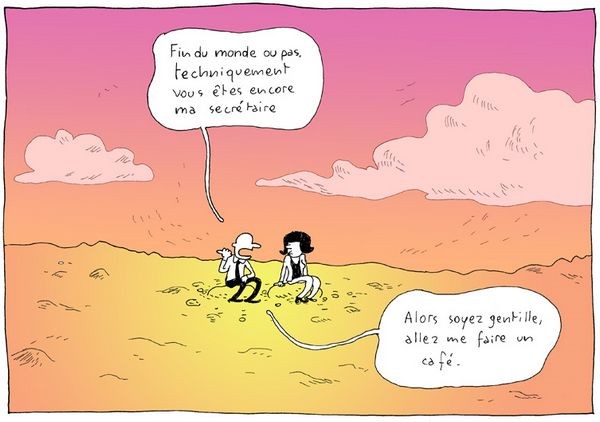 Monsieur Adam Tourpin se réveille juste après la Fin du Monde. L'humanité entière a disparu et la Terre n'est plus qu'un immense désert lunaire… Seule autre survivante : Madame Ève Billot, sa secrétaire, qui entretient des relations assez tendues avec son supérieur. Désormais seuls sur Terre, les deux acolytes tenteront de reconstruire un nouveau Monde à partir de rien. Rien que cela !