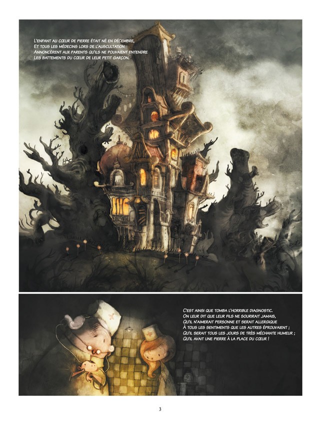 Le jour où la petite fille au cœur d'artichaut rencontre le garçon au cœur de pierre, elle tombe éperdument amoureuse de lui. Dès lors, elle lui offre chaque jour une feuille de son cœur que chaque jour celui-ci rejette plus méchamment. Le cœur de la petite fille se rétrécit et bientôt elle perd sa joie de vivre. Visiblement, le garçon au cœur de pierre ne semble pas du tout prêt à se laisser aimer...