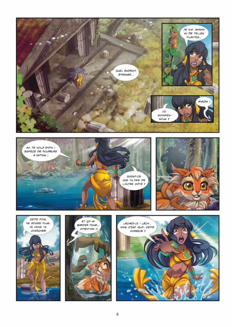 Ramsès, le chaton roux d’Ishanti, est bien turbulent : il échappe sans cesse à la vigilance de sa jeune maîtresse ! Un jour, il se faufile dans le temple sacré d’Anubis, ce qui est bien sûr interdit… Ishanti le poursuit afin de le sauver d’une correction bien méritée, mais le petit chat s’esquive par ce qui semble être une voie d’aération. Mais surprise ! Le tunnel débouche dans… la forêt du Pélion ! Le royaume des faunes et de la petite Atalante…