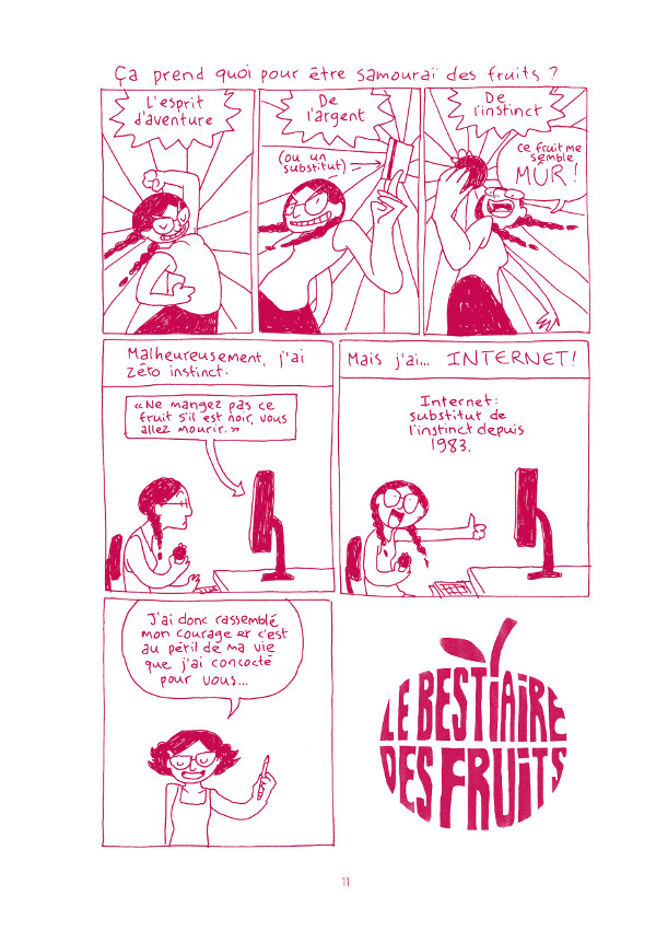 D'abord publiées sur internet et sous la forme d'un fanzine, ses planches se retrouvent dorénavant dans notre nouvelle collection Pomélo. Partiellement redessiné, avec des histoires inédites, c'est le guide le plus loufoque sur le ramboutan, le mangoustan ou le kaki jamais publié.