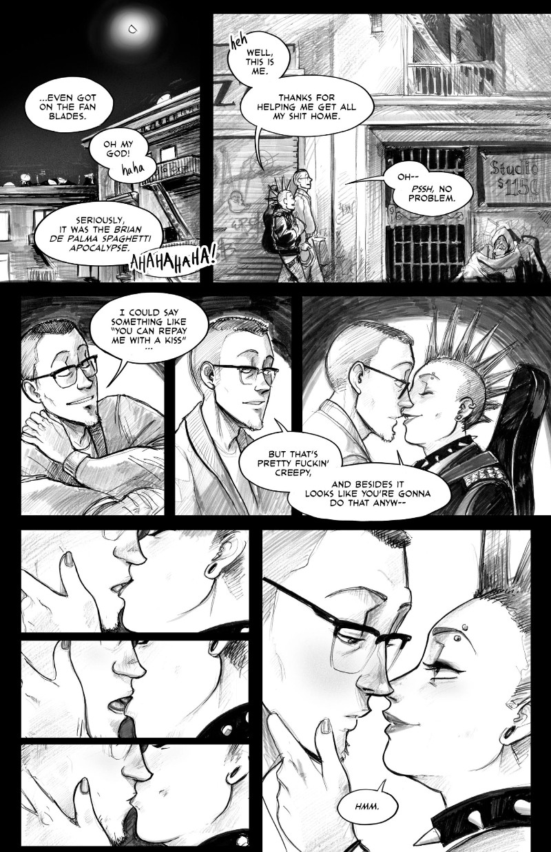 Smut Peddler started back in 2003 as a series of dirty little minicomics featuring some of the coolest folks in indie comics. Now, it's back as a full-sized anthology, featuring 24 different stories of love, sex, and a little bit of angst by a huge array of talented creators. This book offers something for everyone, showcasing a whole rainbow of relationships, sexualities, and genders, plus the occasional robot, satyr, shapeshifter, or major religious figure.