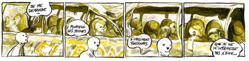 Hanté par l’absurdité de la finitude humaine, ce nouveau livre de L.L. de Mars consiste en un recueil de strips peints selon de délicats camaïeux ocre, orange et bruns.