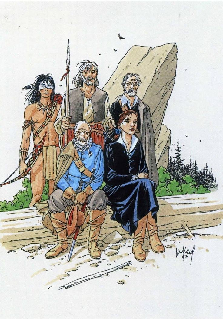 «Pluma al viento» es la continuación de una de las epopeyas más apasionantes del cómic, «Las 7 vidas del Gavilán», que narra el trágico destino que el Gavilán depara a la familia Troïl. André Juillard (ganador del Premio al Mejor Álbum en Angoulême 1995 por «El diario azul») y Patrick Cothias vuelven a demostrar así su inigualable talento en las narraciones históricas.