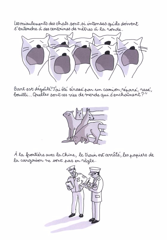 L'épopée en 9 vies de Bart le Zombie Cat s'inspire d'un fait divers survenu en 2015 : à Tampa, Floride, un chat enterré depuis cinq jours est sorti de sa tombe à la stupeur de son propriétaire. Les médias se sont empressés de le surnommer Zombie Cat. Partant de là, Soledad imagine le destin de ce félin indestructible. Un destin fait de pulsions de liberté sans cesse contredites par les réalités du monde. C'est violent et lucide, avec une sorte de happy-end, of course , il faut toujours une happy-end. L'éternel recommencement, le cycle de la vie, est à ce prix.