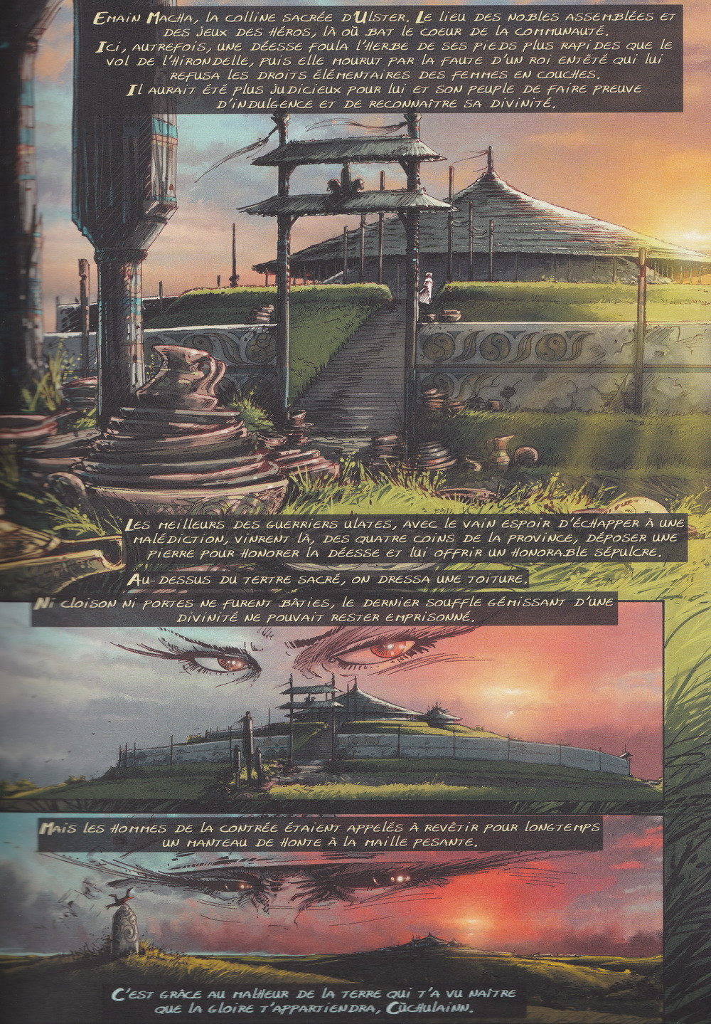 L'Irlande, en pleine épopée celtique à l’Âge du fer, nous dévoile la "geste" de Cùchulainn le héros mythique Irlandais. « Geste » dont le point culminant (An Taìn bo Cualnge) fera briller le héros, dans une Irlande déchirée par une guerre pour l'obtention d'un seul taureau. En solitaire il affrontera l'armée conquérante. Cette histoire est basée sur les écrits des moines Irlandais du Moyen âge. L'originalité de ce projet réside dans l'étude des textes originaux traduits et de faciliter l'adaptation moderne en scénario cohérent, tout en respectant les motifs mythologiques. De même pour les contextes, objets et vêtements qui tentent de respecter l'aspect historique sans pour autant fermer la création originale. Le tout pour séduire un large public qui ne connaît pas la légende et sans pour autant trahir les connaisseurs. Créer le mariage des possibles pour ce récit inédit en France. Cùchulainn est un personnage grandiloquent, fantastique, impressionnant et violent, et ses compagnons comme ses ennemis ne sont pas en reste de ce point de vue. L'intervention des dieux à travers les aspects sociopolitiques de l'histoire, saura aussi faire ressortir la magie de cette épopée.