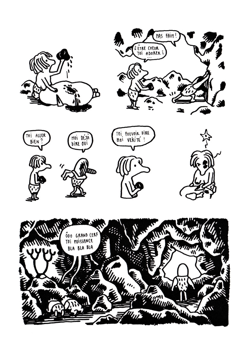 Les 3 récits qui composent Ecce Homo se déroulent à des époques différentes pour signifier que cet homme là est universel. Depuis la préhistoire, le décor et les accessoires ont changé, mais les acteurs restent à peu près les même. Le pathétique de l'existence a bel et bien traversé les âges sans vieillir, lui.
