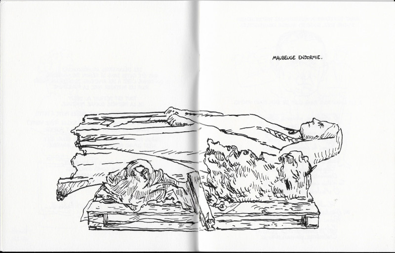 Info édition : Le livret est contenu dans une pochette qui fait office de couverture. Dessins réalisés par benoit Preteseille pendant une résidence au MusVerre de Sars-Poteries du 23 au 26 avril 2019.