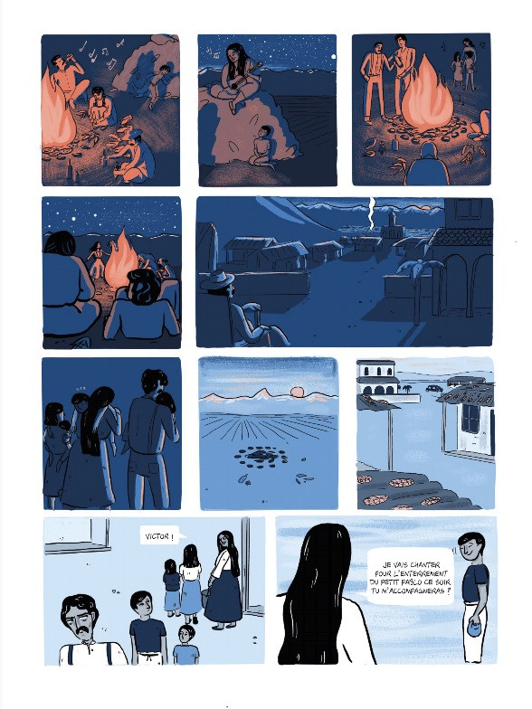 Santiago, 11 septembre 1973. 14 heures, précisément. Le président socialiste Allende vient de se donner la mort d'une balle dans la tête avec son AK-47. Les putschistes viennent de réduire à néant les espoirs d'un pays et d'une gauche plurielle qui se voulait unificatrice. Le général Pinochet, appelé le « traître » par le leader socialiste quelques heures avant le coup fatal, régnera d'une main de fer sur le pays pendant seize années et les stigmates de sa dictature sanglante resteront à jamais gravés dans l'esprit des Chiliens. En parallèle se joue l'avenir d'un artiste populaire non moins fameux. Son nom : Victor Jara ; son arme : une guitare. À quarante ans, le chanteur se retrouve embarqué avec de nombreux autres militants dans le Stade national et subit la torture. On retrouvera son corps criblé de balles (44, en tout) dans un terrain vague. La fin est funeste ; la vie à la hauteur de l'homme. Cette bande dessinée ambitionne de retracer la vie du chanteur, de son enfance paysanne jusqu'à sa fin tragique. Un parcours saisissant, dont elle décrit les moindres aspects, de la vie privée jusqu'à l'engagement politique. Une bande dessinée pour rétablir sa mémoire et témoigner d'une époque ou les aspirations d'un homme et d'un peuple furent renversées par le fascisme.