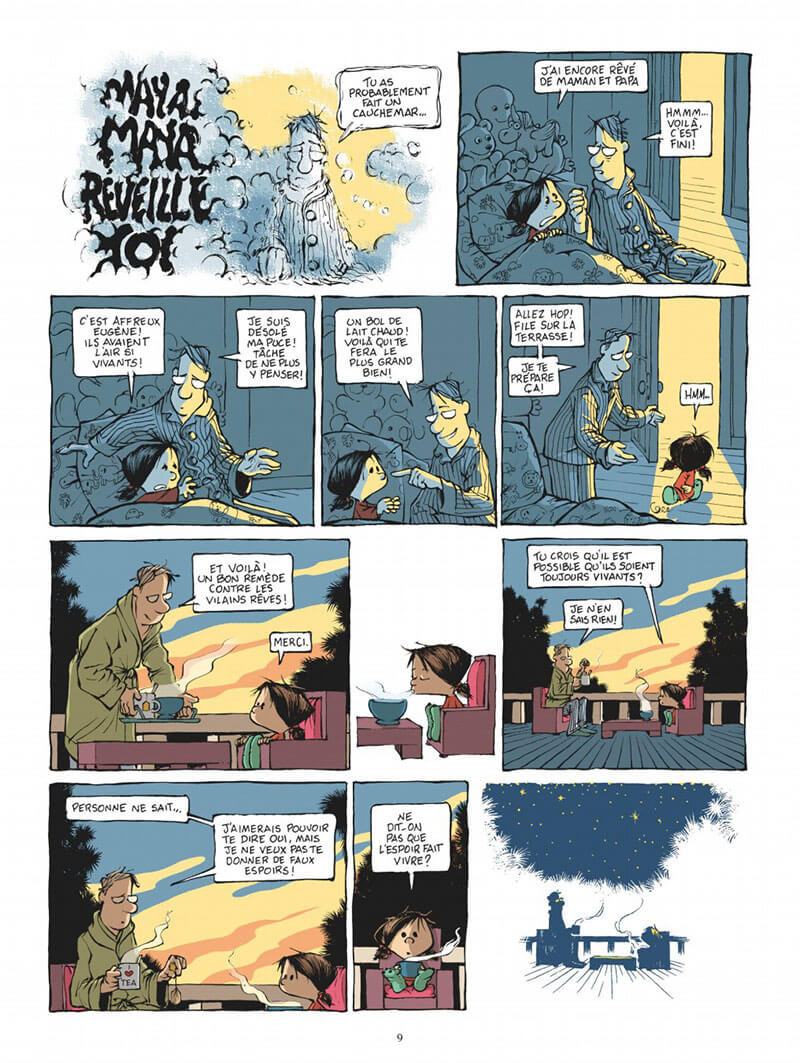 Une petite fille qui se pose de grandes questions... Maya est une petite fille qui s'interroge sur le monde qui l'entoure en compagnie de son pote Leonardo, un petit garçon taciturne qui se désole de n'avoir encore rien fait de fondamental à l'âge de 8 ans ! Est-ce que Dieu existe ? Pourquoi les végétaux sont-ils sensibles à la musique ? Pourrait-on arrêter de manger les jolies vaches pour se nourrir ? Autant de questions que Maya se pose avec un regard tendre et malicieux. Les promenades aux côtés de son oncle Eugène, chez qui elle vit, sont aussi de belles occasions pour entamer un délicieux dialogue. Avec un répondant désarmant, Maya aborde ici des thèmes de Société qui donnent à réfléchir non sans une bonne dose d'humour ! Connu pour être le dessinateur de Game Over depuis 2004, Adam Devreux endosse pour la première fois la double casquette du dessinateur et du scénariste avec ce premier tome, drôle et pédagogique. Cela lui réussit bien ! Avec une petite héroïne irrésistible, qui navigue entre Mafalda et Peanuts, cet album de gags et d'histoires courtes qui s'enchaînent avec fluidité, nous offre un vrai moment rafraîchissant.