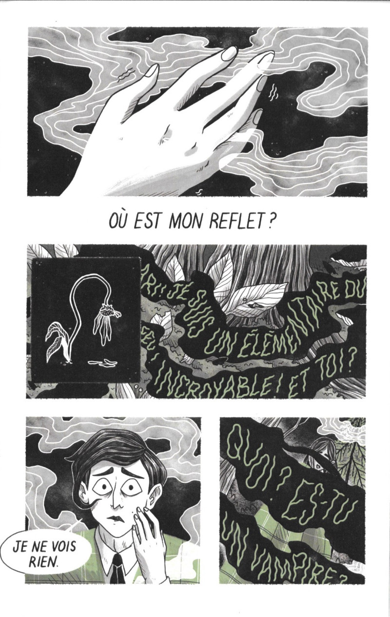 Le Reflet est une BD/zine qui explore le thème du "reflet" dans un visuel aux couleurs très limitées.