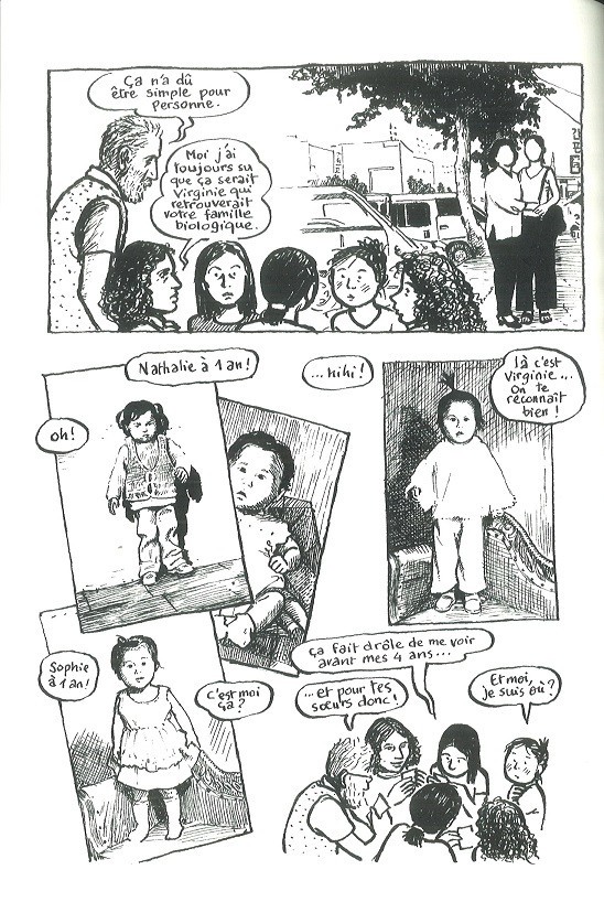 Sophie Darcq est à la fois une inconnue, puisque Hanbok est son premier livre, et quelqu'un qu'on ne présente plus dans le milieu de l'édition alternative ou dans la petite communauté d'autrices et d'auteurs d'Angoulême, où son talent est reconnu depuis longtemps. Née Coréenne en 1976, française d'adoption, Sophie Darcq est diplômée de l'EESI et a été résidente à la Maison des Auteurs d'Angoulême, avant de décider de partir en Corée sur les traces de sa famille biologique, avec l'une de ses quatre soeurs. C'est cette histoire que raconte Hanbok, récit familial poignant, entre l'exorcisme et la nécessité de connaître ses racines. Commencé il y a une quinzaine d'années, Ce premier tome de Hanbok (sur deux prévus) se démarque du flux de bandes dessinées autobiographique actuel par le profond besoin de vérité qu'on y trouve et par le brio du dessin. Passant avec désinvolture d'un style réaliste époustouflant à une grammaire minimaliste, d'un registre épistolaire à une narration historique, Sophie Darcq maîtrise son sujet et le langage de la bande dessinée comme peu d'autrices publiant leur premier livre.