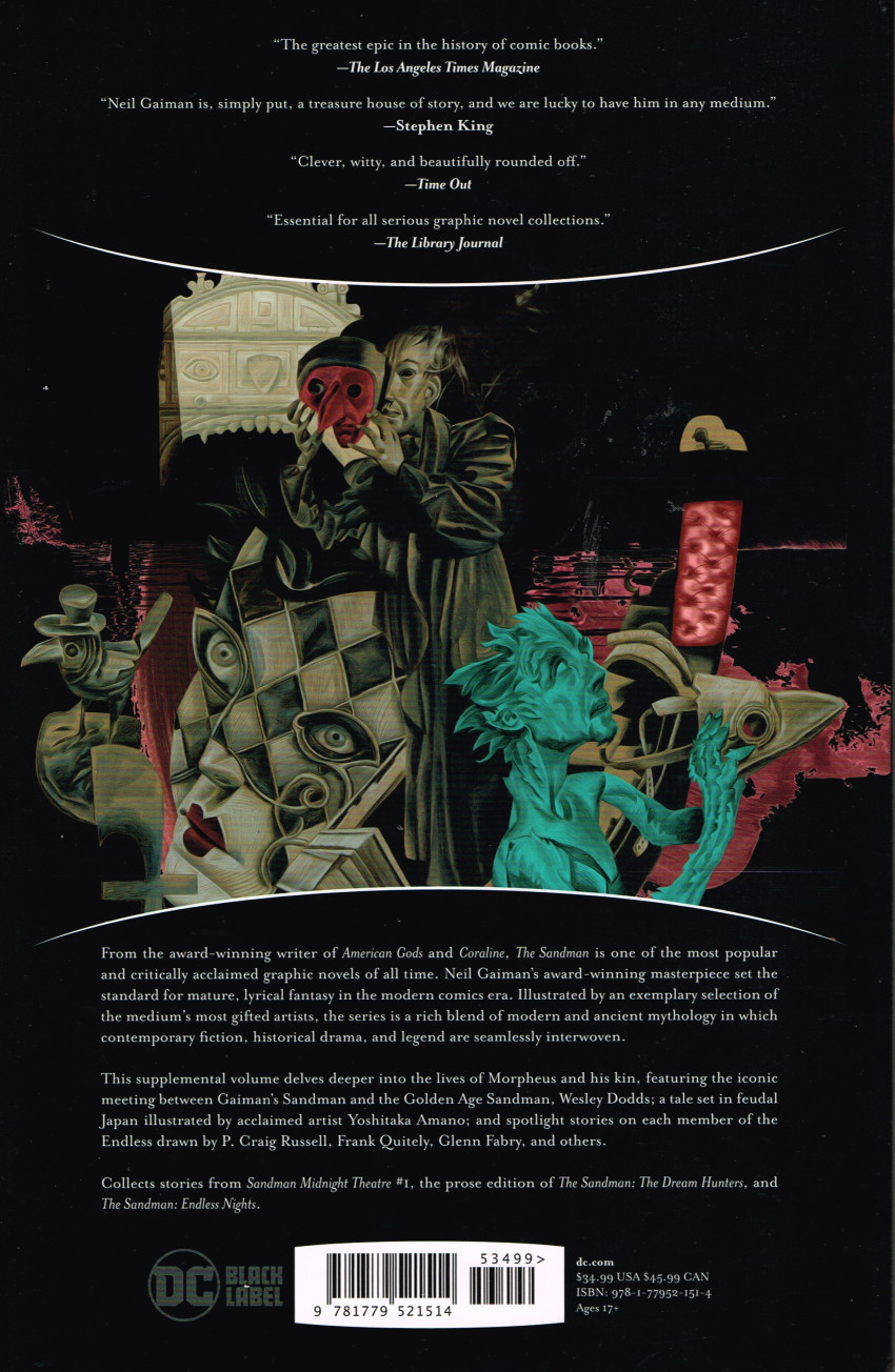 En 2022, DC Black Label a commencé à réimprimer la série principale Sandman sous la forme d'une série de collections de poche. Ceux-ci rassemblent les éditions du 30e anniversaire de la série originale en quatre volumes de poche. Ceux-ci ont été suivis en 2023 par deux autres livres, rassemblant le reste des éditions du 30e anniversaire, ainsi que Sandman Midnight Theatre #1 et The Sandman Universe #1. Couverture souple, macaron Netflix