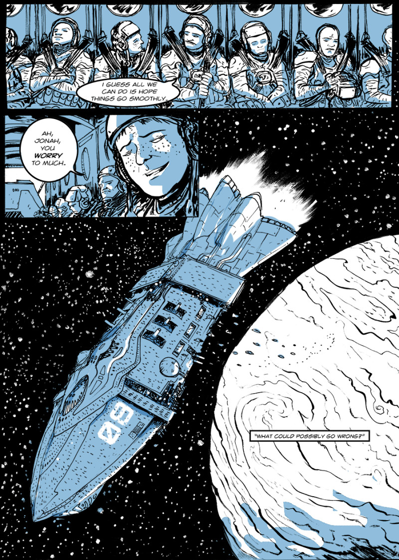 Perfect for fans of Firefly and Cowboy Bebop, Space-Mullet is a sci-fi romp about a ragtag crew of misfits doing everything they can to get by in space. Space-Mullet is an episodic comic about a washed-up, Ex-Space Marine trucker named Jonah and his alien co-pilot, Alphius. Together, they do their best (and usually fail) to do good throughout the galaxy.