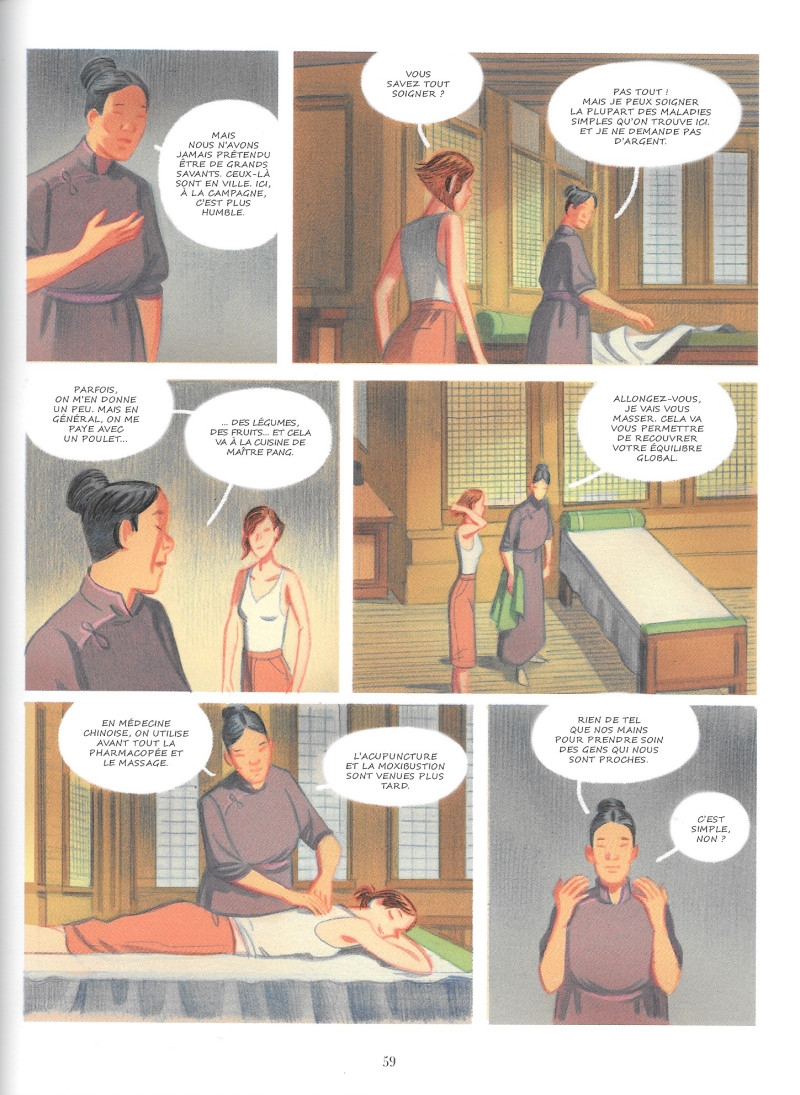 « Un long voyage commence par un pas. » Fanny arrive à Shanghai en 1937 pour parfaire ses études de littérature chinoise. Grâce à Taiming, un négociant en herbes médicinales, elle plonge dans la conception du monde, du corps et de l'équilibre dans la pensée taoïste. L'expérience d'un court voyage sur une montagne isolée, et la rencontre de pratiquants du Tao, la changeront pour toujours.