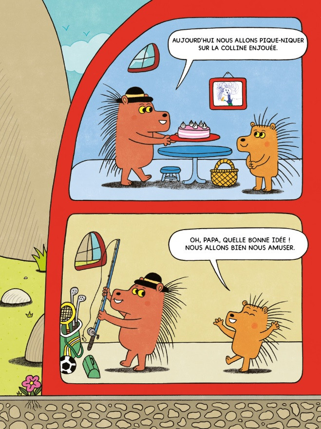 Papa porc-épic et son fils Petitépic se préparent pour une journée ensoleillée au grand air. Ils comptent bien en profiter, mais rien ne se passera comme ils l’avaient imaginé ! Sans compter que la nature est imprévisible et pas toujours très sûre...