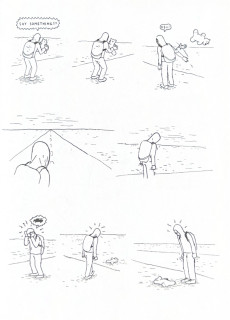 Dogs and Water chronicles a piece of a lonely journey, without origin or destination. A young man wandering a nameless path has only a stuffed bear as a companion, which inertly endures his desperation, anger, and musings along the way. The landscape is cold and bleak with few landmarks, and offers only precarious encounters with animals and armed men. These interactions are rife with instinct, the drive for survival, and human ethics concerning the killed and injured. He finds acceptance with a pack of dogs, though their nature is wild and their potential threat is as unsettling as the sudden presence of a massive pipeline on the horizon. In a dreamlike state, the endless land becomes a vast body of water where his boat is destroyed and his body floats in a subconscious space. On land, the road disappears and only blind circumstance remains. All is uncertain and all can be lost, but he continues on regardless.