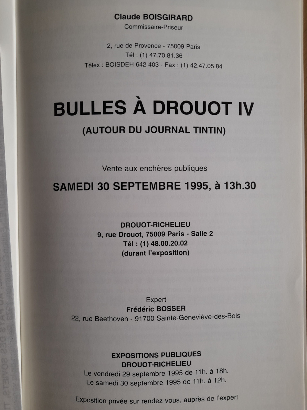 Info édition : Catalogue ventes aux enchéres 1995 expert Bosser Frédéric L'âge d'or du journal Tintin