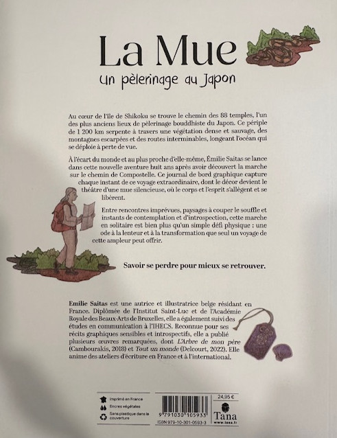 Au coeur de l'île de Shikoku se trouve le chemin des 88 temples, l'un des plus anciens lieux de pèlerinage bouddhiste du Japon. Ce périple de 1 200 km serpente à travers une végétation dense et sauvage, des montagnes escarpées et des routes interminables, longeant l'océan qui se déploie à perte de vue. À l'écart du monde et au plus proche d'elle-même, Émilie Saitas se lance dans cette nouvelle aventure huit ans après avoir découvert la marche sur le chemin de Compostelle. Ce journal de bord graphique capture chaque instant de ce voyage extraordinaire, dont le décor devient le théâtre d'une mue silencieuse, où le corps et l'esprit s'allègent et se libèrent. Entre rencontres imprévues, paysages à couper le souffle et instants de contemplation et d'introspection, cette marche en solitaire est bien plus qu'un simple défi physique : une ode à la lenteur et à la transformation que seul un voyage de cette ampleur peut offrir.