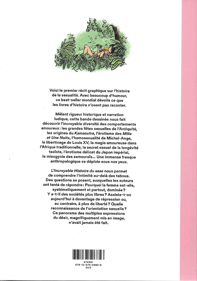 Mêlant rigueur historique et narration ludique, cette bande dessinée nous fait découvrir l’incroyable diversité des comportements amoureux : les grandes fêtes sexuelles de l’Antiquité, les origines du Kamasutra, l’érotisme des Mille et Une Nuits, l’homosexualité de Michel-Ange, le libertinage de Louis XV, la magie amoureuse dans l’Afrique traditionnelle, le secret sexuel de la longévité taoïste, l’érotisme délicat du Japon impérial, la misogynie des samouraïs… Une immense fresque anthropologique se déploie sous nos yeux.