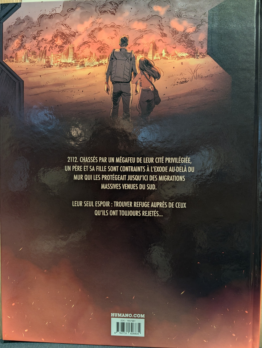 2112. Le monde est ravagé par un climat hostile. Seuls une poignée de privilégiés vivent décemment, protégés par leur Cité dont les murs empêchent les invasions... Mais un jour, la ville fortifiée s’effondre à son tour sous les flammes. Au milieu d’un désert de cendres, un père et sa fille fuient les ruines de ce monde qui se pensait à l’abri de tout, pour tenter de survivre auprès des défavorisés dont la Cité les protégeait jusque-là...